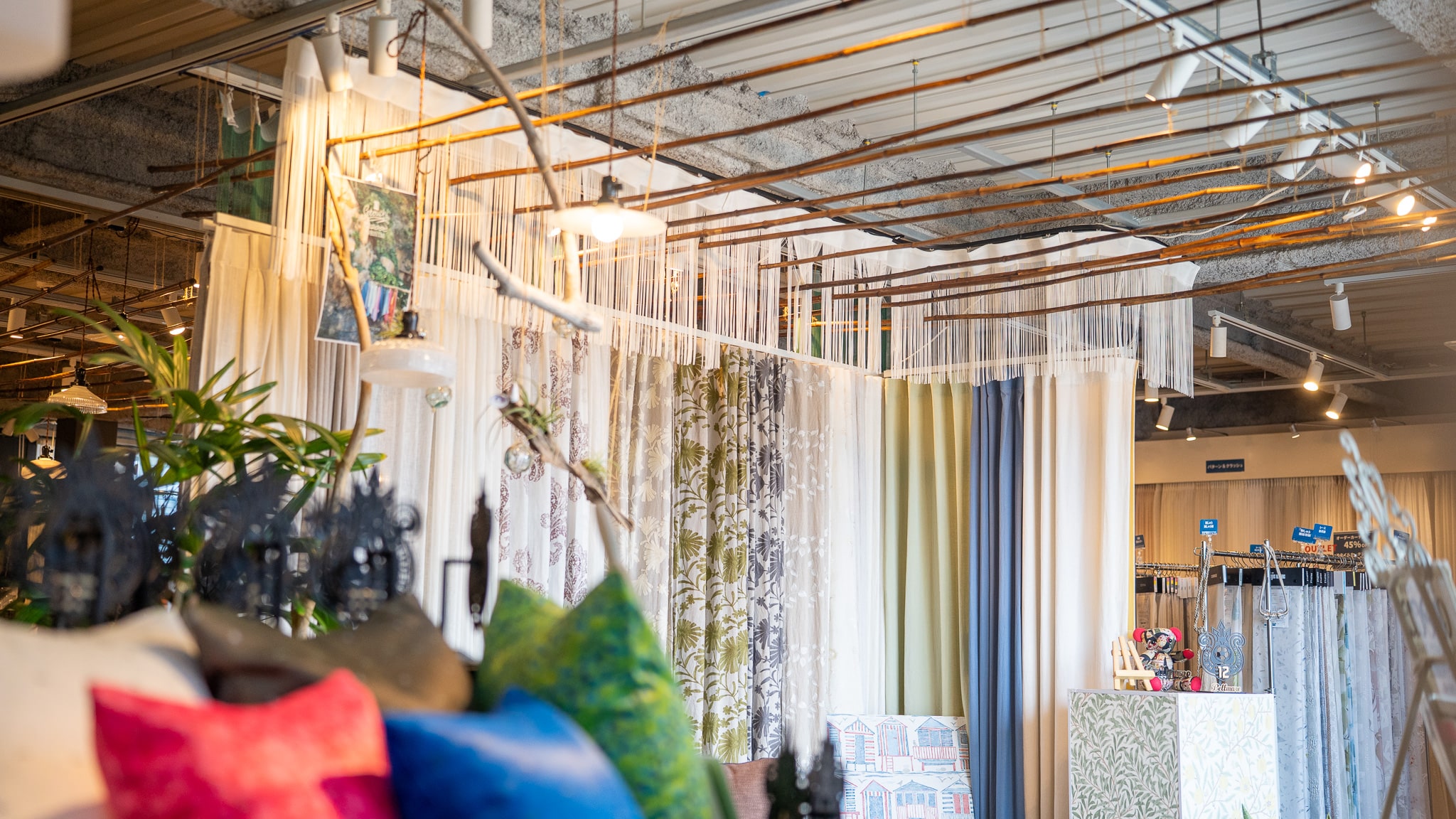 私たちはオーダーカーテンをインテリアの中心に据え、家具、ラグ、壁紙、エコカラット、オーダー家具、システム収納家具、フロート型テレビボード、照明器具、エアコンなど、生活に必要なインテリア商品を幅広く取り扱っています。