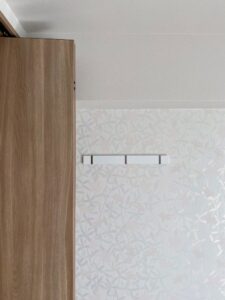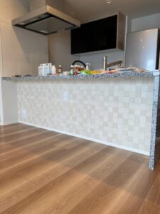 カウンター下のエコカラットとアクセントクロスで魅せるインテリア
